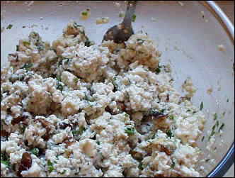 Mescolate bene gli ingredienti poi aggiungete l'olio, il succo di limone e l'acqua. Se il composto dovesse risultare ancora asciutto, aggiungete altra acqua.