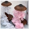 For such a lovely recipient, the Christmas tree needed to be special. Since it's outdoors, I used the snowflake paper. Each layer is trimmed with Madeleine lace and graduating pearls. The top is adorned with Shabby White Jingle Bells and a jute triple bow, while the tree trunk is made with Double Row Pearl Trim. It rests atop a Joy! Crafts Oval Frame, encircled with Pearl String. For extra softness, I layered them atop a doily.