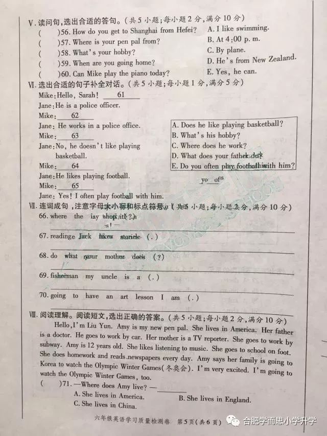 奥数合肥站 > 小学试题库 > 六年级 > 其他试题 > 英语 > 正文