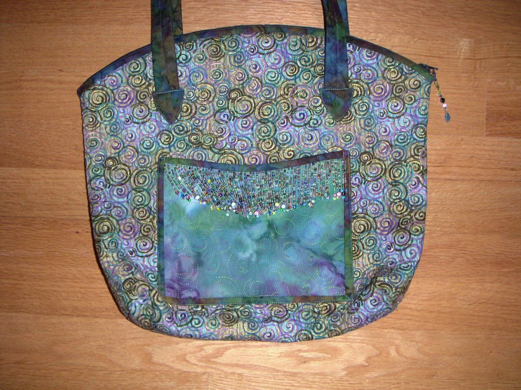I'd been wanting to make some appliqued (yes, I know it should have an accent mark - but I don't know how to get it there on blogger) amulets, so the pear is the first of those designs that I've finished. The blue amulet is from my pattern, although I added more beading on the bag part, since the fabrics that I chose needed more embellishing.