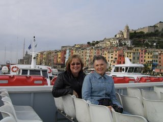 Italy was wonderful! Better than I could have ever imagined! My favourite place was the Cinque Terre - I'd never heard of it before, but here's a photo of me and a new friend, Peggy, on our way over to Portovenere. You can see the colourful buildings behind us. These homes are built on the side of cliffs and walking around these villages takes strong legs. You're walking up or down, never on flat ground!