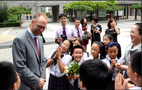 (左二丹麦首相赫勒·托宁·施密;左一,北大附小校长尹超)