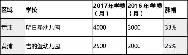 黄浦区的两所吉的堡集团旗下幼儿园同样涨幅30%左右。