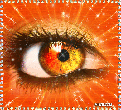 Оранжевая блестящая анимационная картинка - роскошный взгляд из-под пышных ресниц кареглазой красавицы способен покорить не одно мужское сердце.