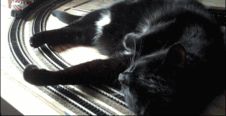 Черный кот-стрелочник руководит железнодорожными перевозками.