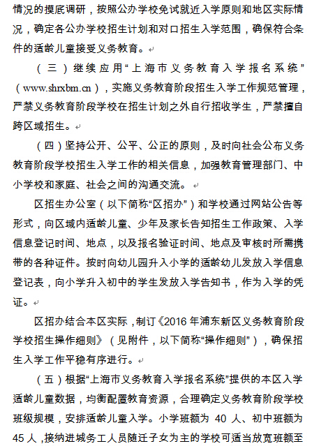 2016年上海浦东新区小升初招生工作实施意见(招生政策公布),详情如下。