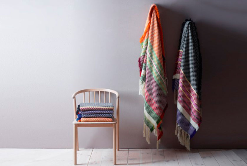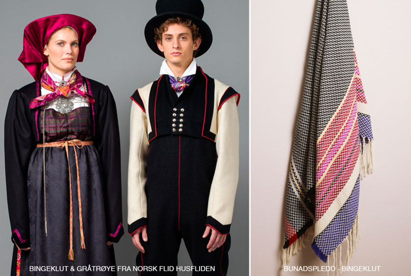 Det er vel i grunnen ikke noe som hører vårfestene bedre til enn bunad. Men man kan jo ikke akkurat dekke bordet med bunad selv om man skulle ønske det… Men om ikke annet kan man nå pynte litt med bunad! Under London design Festival i 2012 lanserte Andreas Engesvik og Mandal Veveri en helt ny produktkategori: bunadspledd! Bunadspleddene er designet ved hjelp av striperapporter fra utvalgte bunder, og kolleksjonen utvides stadig. Engesvik fikk ideen til bunadspleddene en julaften for noen år siden da han satt på kjøkkenet med sin bunadskledde kjæreste og hennes familie gående rundt seg. Alle hadde på seg bunader fra Setesdal – fagene, stripene og detaljene var overveldende, og han så da at bunader kan oppleves som farger komponert på en overflate. Bunadspleddene er nettopp en forenkling og oversettelse av bunadene til en annen overflate; et bunadspledd. Det er Mandal Veveri som produserer stoffene – en tradisjonsrik tekstilprodusent, som blant annet produserer stoffer til Norsk Flid Husflidens over 100 bunader.