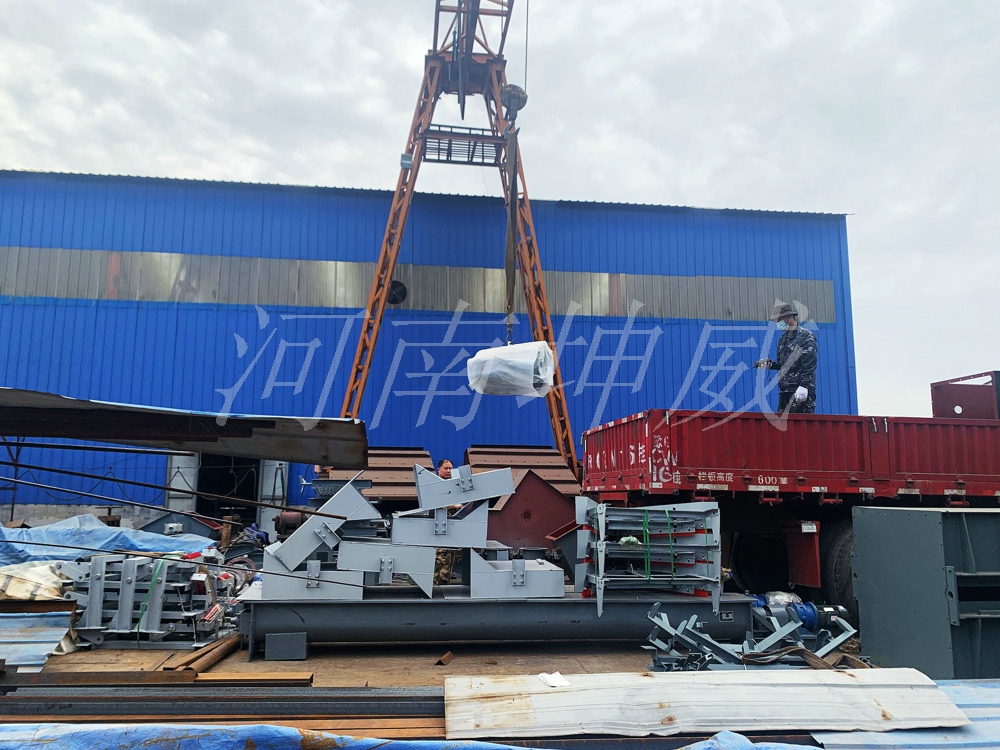 发往安徽的皮带输送机装车发货了 各个部件正在装车 电动滚筒