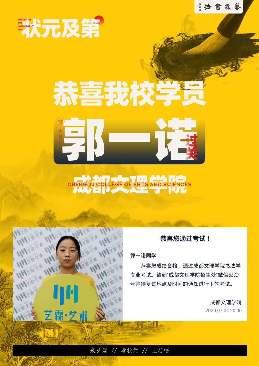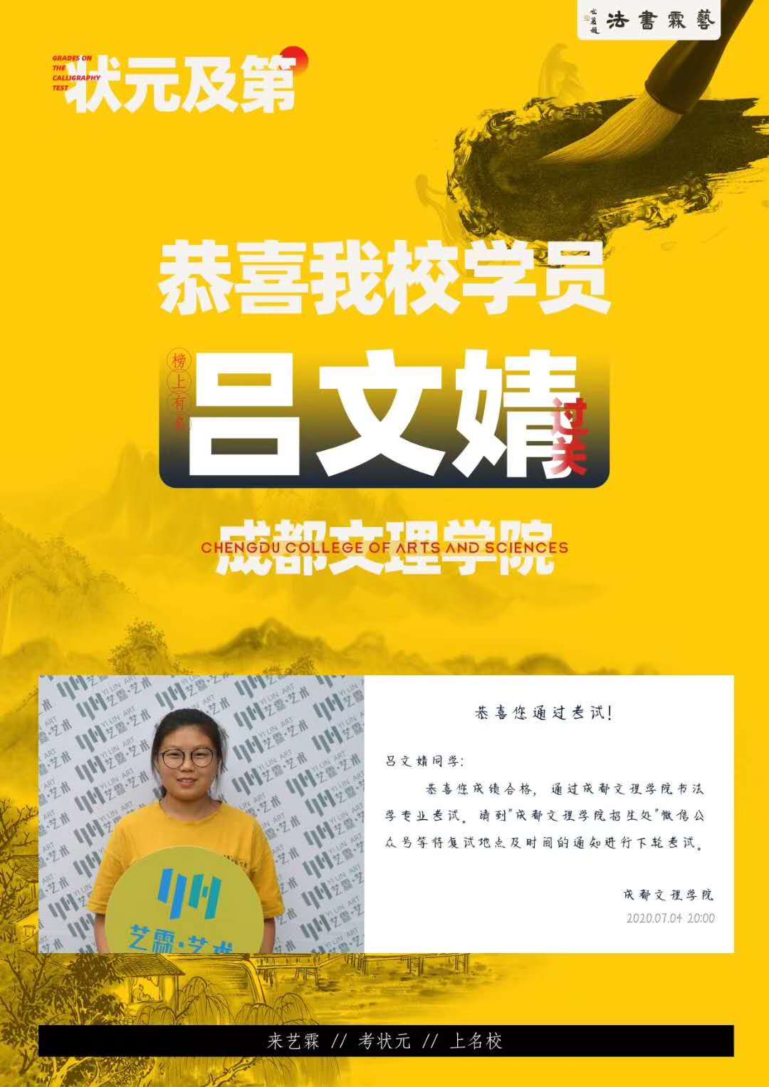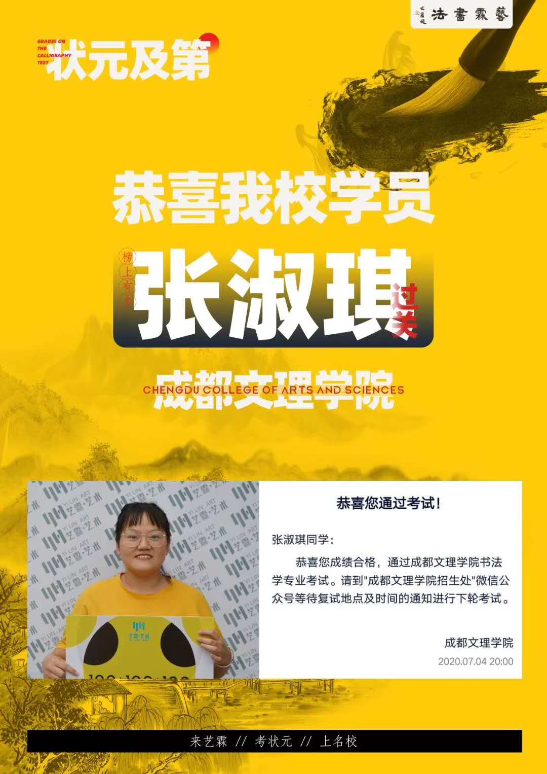 自创校以来,经艺霖艺校培训输送的学子有3000余人先后被全国九大美院以及全国重点大学录取,历年高考达线率均超过95%,辛勤的耕耘收获了教育的硕果累累,可谓有口皆碑、有据可查,教育成果的丰碑真正树在了在学生和家长的心中。从这里走出的毕业生有多名进入了山东大学、山东师范大学、德州学院、泰山学院等高校专业任教,使艺甘霖艺校的优良风范得到了传承。