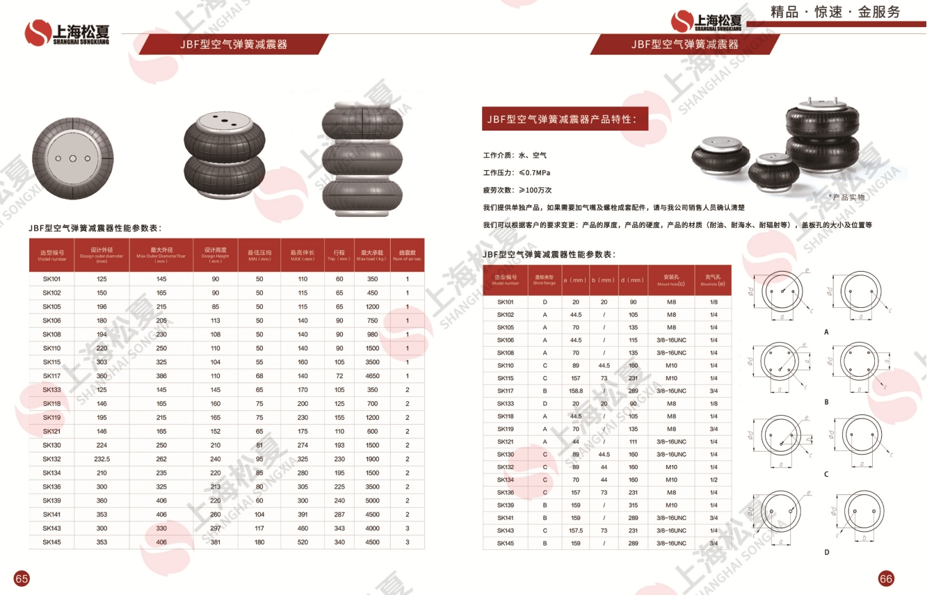 Air spring is an elastic corrugated tube that achieves elastic support, shock absorption, and stroke adjustment by filling compressed air/nitrogen/water. its nonlinear stiffness characteristics keep the natural frequency stable, making it suitable for precision instrument damping, load adjustment, and vibration con.trol.