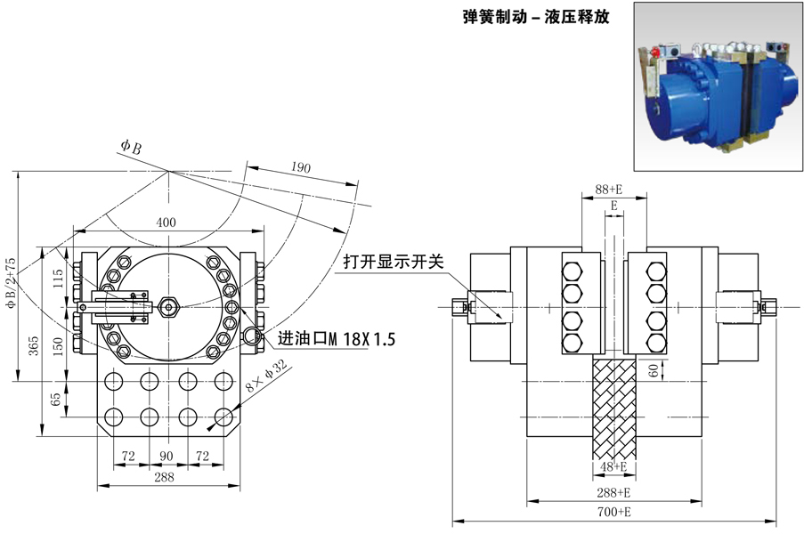 彈簧制動(dòng)-液壓礙放-適合盤厚: 30mm