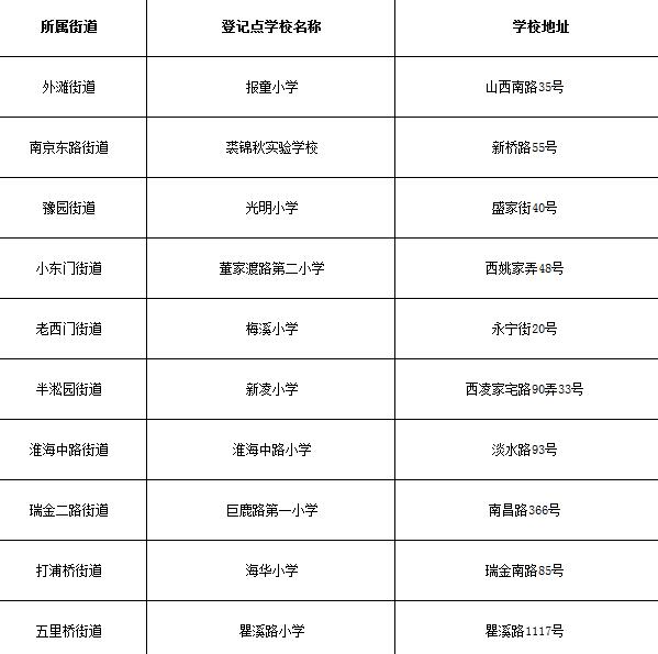 2018年上海市黄浦区小学入学现场验证各街道指定登记点