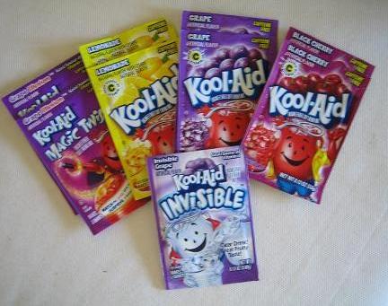 Tässä on muuten taas klassinen tapaus siitä, kun laittaa miehen asialle: sanoin kaverilleni ennen reissua about 100 kertaa (ja sen aikana useasti meilitse ja mesessä) , että tuo niin paljon Kool-Aidia ku vaan jaksat kantaa ja aina vähintään kaks pussia per maku. Ja mitä tämä mies sanoo palatessaan kotomaahan: "Ei tästä ollu mitään vaivaa, eihän ne painanutkaan mitään, että ois voinu kyllä tuoda enemmänkin. Ja oli halpoja, ne makso 29 c kpl, mutta ku osti kymmenen pussia, niin hinta oli vain 10 c kpl. Toin näitä siis kymmenen." Siis anteeksi mitä?! Jokin vakava kommunikaatiokatkos tässä nyt on; mies tuo 10 pussia, kun mä pyydän tuomaan rajattomat määrät, ja sit se vielä toteaa, että oishan noita voinu tuoda vaikka kuinka paljon enemmän, kun ovat halpoja ja kevyitä. Voi tule ja puserra...
