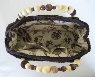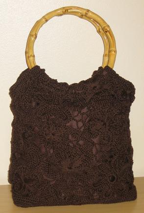 Siinä se nyt seisoo, kauan odotettu ruskea kukkalaukku kahvoineen kaikkineen. :) Päädyin eilisellä kaupunkikierroksella ostamaan rottinkikahvojen sijasta bambuiset, kun en jaksanu alkaa ravata lakan perässä. Kaipa noi bambuiset sopii ihan hyvin, ainakin ne on oikeen kokoiset (halkaisija 15 cm). Edelleen harmittaa, etten saanu niitä haluamiani tummanruskeita pyöreitä puukahvoja, hmph. Jotenkin meni ihan into ja hohto laukun viimeistelystä, kun tiesi, ettei siitä tuu just sellainen kuin oisin halunnut. No, tulipahan tehtyä kuitenkin. Ja onhan se söötti noinkin. :)
