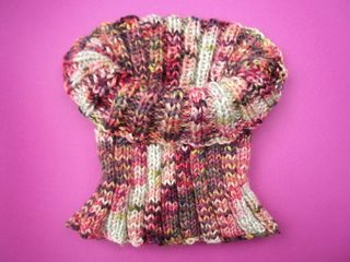 Derfor strikket jeg et langt rektangel og masket det sammen til en hals. I tillegg til at garnet har fargestriper, har jeg strikket striper med rett og vrangt, i ulike tykkelser. Mye for at den ikke skal rulle seg i kanten, men også for å gi en ekstra dybde til stripene.